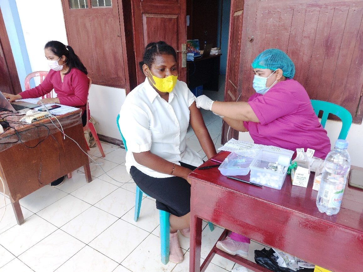 STKYAKOBUS.ac.id – Pada hari Selasa, 21 September 2021, bertempat di kampus Sekolah Tinggi Katolik Santo Yakobus Merauke, diselenggarakan kegiatan vaksinasi Covid-19 secara masal untuk civitas akademika STK St. Yakobus Merauke, alumni dan masyarakat sekitar. Kegiatan ini terlaksana berkat kerjasama antara STK St. Yakobus Merauke dengan Polres Merauke. Vaksin diberikan untuk penerima dosis pertama dan dosis kedua dengan jenis vaksin Sinovac. Antusiasme mahasiswa untuk mengikuti vaksinasi cukup besar, hal ini dibuktikan dengan 72 mahasiswa menerima vaksin dosis pertama dan kedua. Sementara sebagian besar mahasiswa STK St. Yakobus Merauke sudah menerima vaksin dosis kedua secara mandiri melalui unit-unit pelayanan vaksinasi yang ada di Kota Merauke.