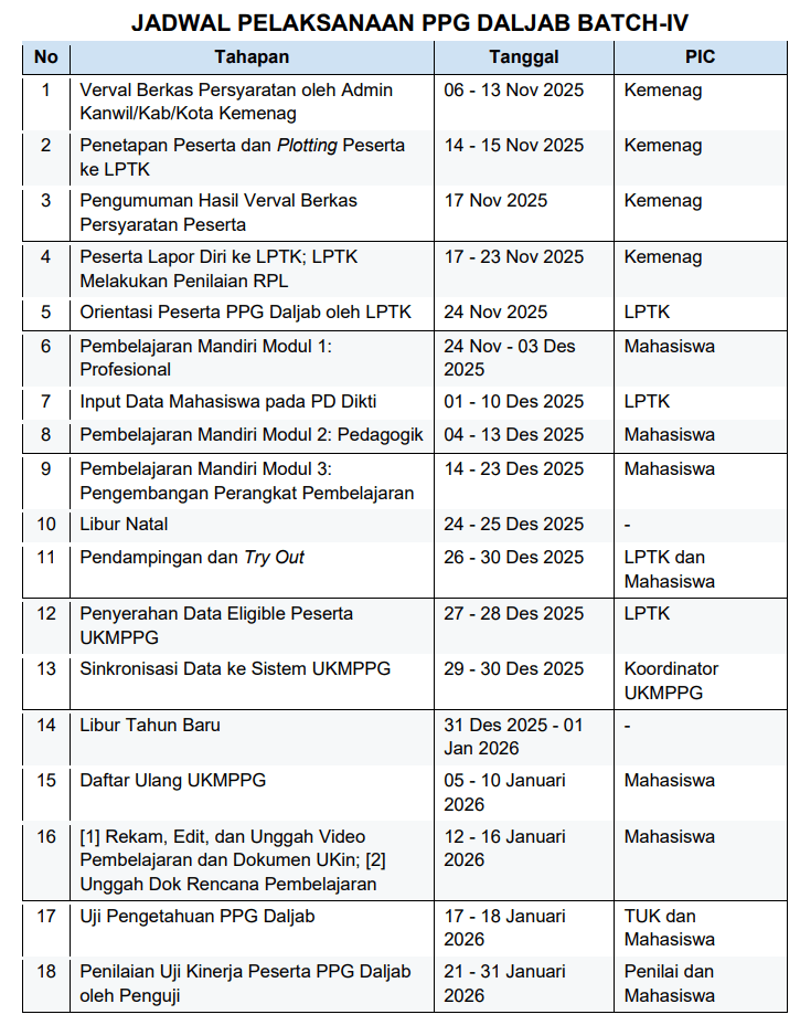Gambar berikut adalah rancangan alur desain Program PPG Dalam Jabatan Model Transformasi mulai tahun 2025. Mahasiswa Wajib melakukan lapor diri ke LPTK Penyelenggara PPG sesuai penetapan yang telah dilakukan oleh Panitia Nasional PPG.