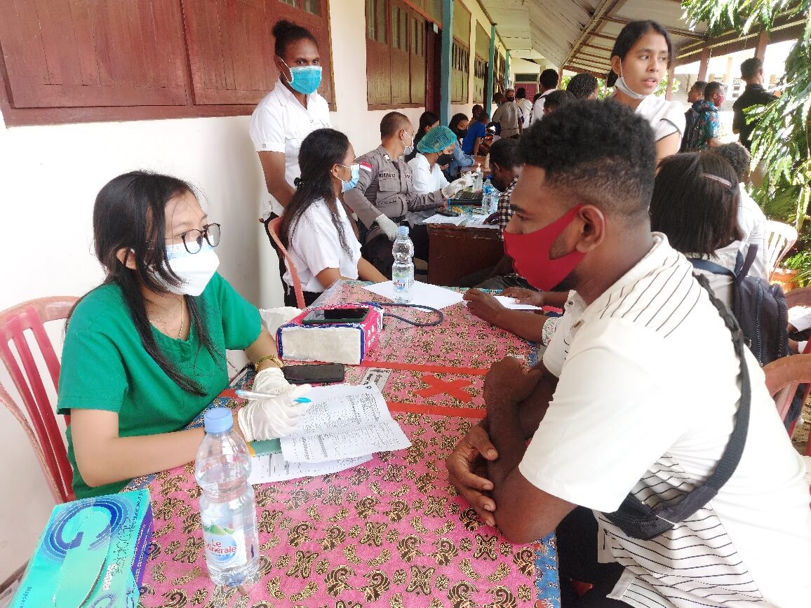 Kasat Samapta Polres Merauke, Iptu Prih Sutejo yang turun ke lapangan langsung memantau jalannya proses vaksinasi dibantu sejumlah personel kepolisian dan petugas kesehatan turut membagikan paket sembako kepada orang-orang yang menerima vaksin. Dalam arahannya, Iptu Prih Sutejo mengatakan bahwa vaksin aman dan tidak berbahaya, beliau meyakinkan hal tersebut supaya para mahasiswa yang akan menerima vaksin tidak ragu-ragu. Beliau juga berpesan agar para mahasiswa setelah menerima vaksin, tetap menjaga protokol kesehatan supaya dapat membantu program pemerintah dalam memutus mata rantai penyebaran Covid-19 khususnya di wilayah Kabupaten Merauke dan sekitarnya.